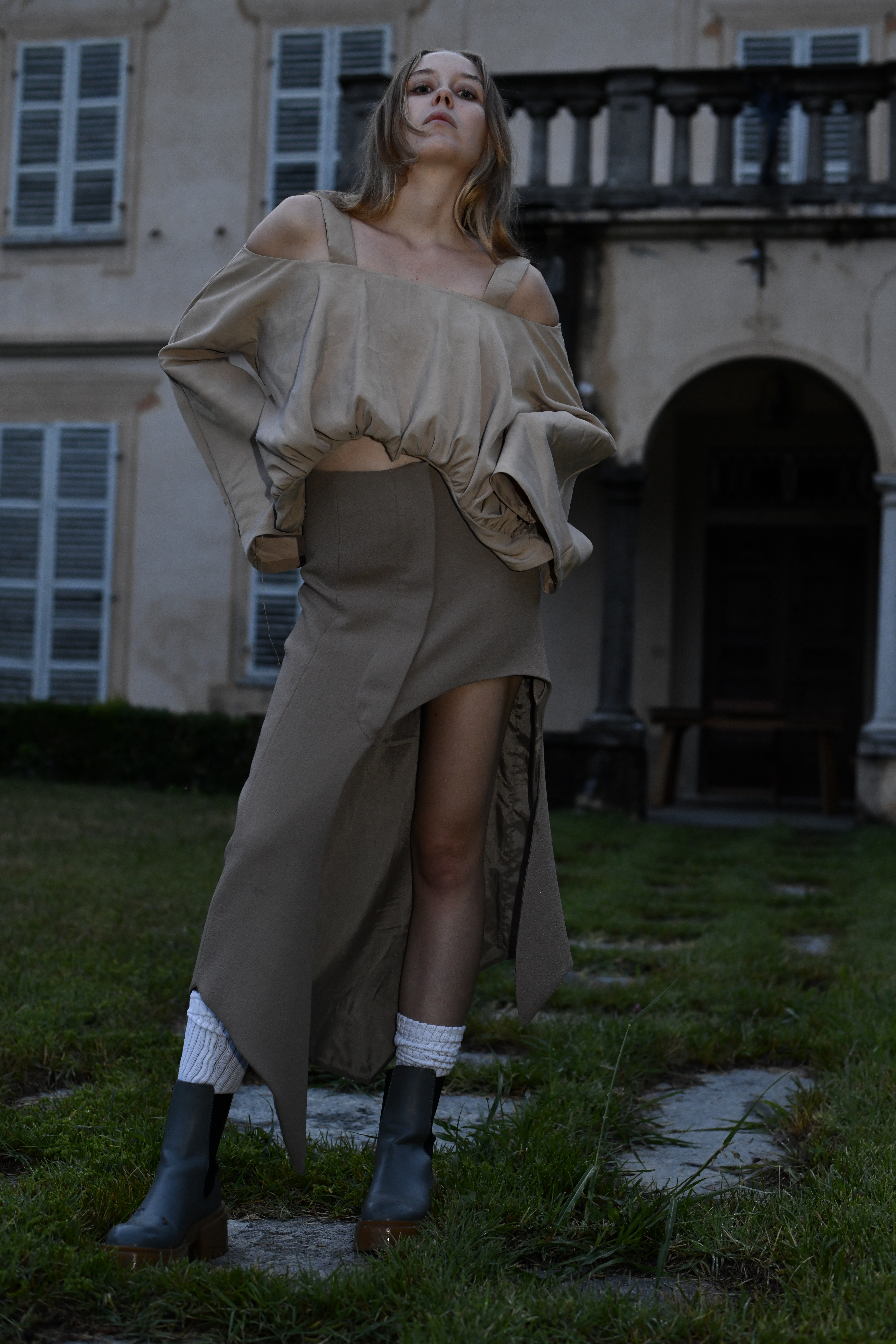“Light Exodus” Fall/Winter 2022–2023 explores healing and growth after trauma. Mixing 60s childishness with 90s grunge, the collection blends innocence and decay in an intentionally unsettling way. Tight or oversized cuts express vulnerability and the process of outgrowing pain. The progression from naive to sensual garments symbolizes a journey from darkness toward peace and acceptance.