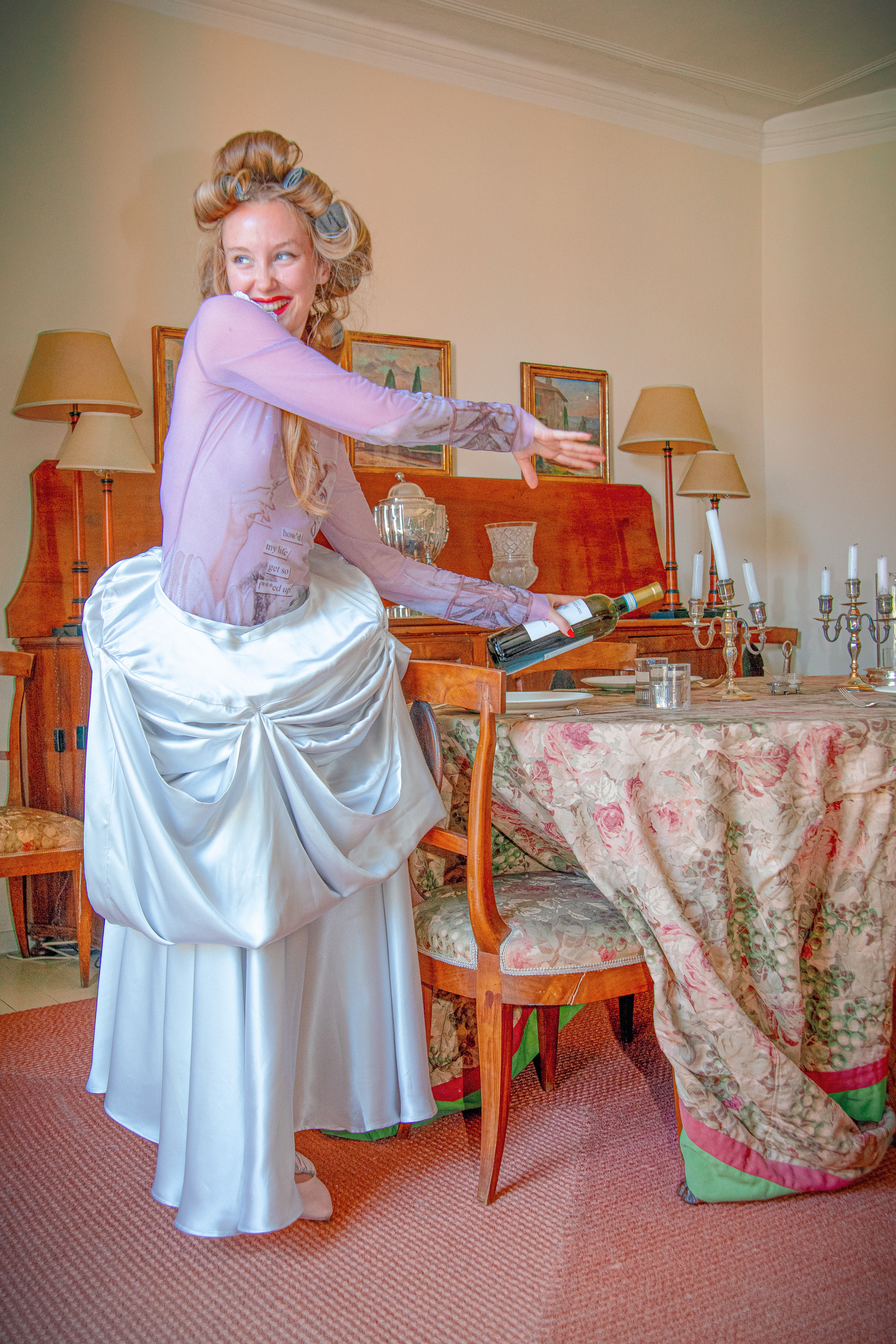 This collection draws inspiration from the 1950s, when women sought emancipation despite societal oppression. It tells the story of a woman who builds a wardrobe from household fabrics, curtains, tablecloths, and bedsheets symbolizing the burdens women carry and their resilience. Using recycled, unconventional materials inspired by postwar “make do” creativity, the designs mix irony, volume, and detail to honor women’s strength and self-expression. Ultimately, the collection celebrates fashion as a means of liberation and storytelling.
